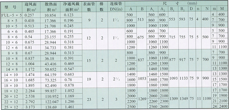 FUL型散熱器外型尺寸及主要參數表